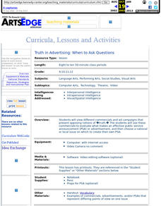 High schoolers view different commercials and ad campaigns that present opposing notions of "truth." Students use these commercials to evaluate what makes an effective public service announcement (PSA) or advertisement, then choose a...