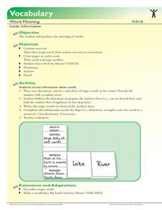Young scholars investigate new vocabulary words with a fun, collaborative activity. Given a deck of word cards, pairs of students flip over one at a time and independently look up the term in a dictionary. They then take turns rolling a...