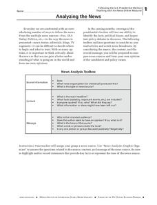 Different media sources portray news in a variety of ways. In groups of three, learners look at different news sources, bringing in all the findings the next day. Three handouts help scholars compare sources, define specific terms used...