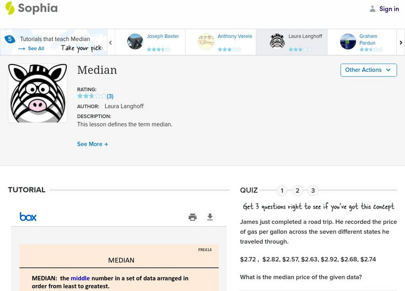 Sophia: Median: Lesson 6