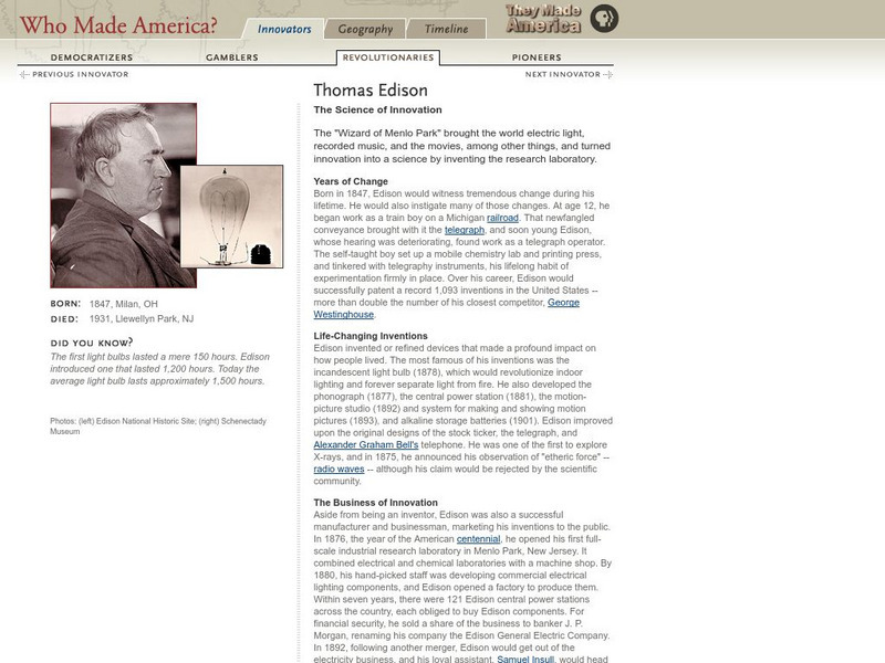 Pbs Learning Media: Thomas Edison: Inventor and Entrepreneur