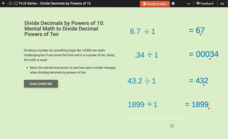 Boost mental-math skills with an interactive that focuses on dividing whole numbers by powers of 10. Mathematicians solve five fill-in-the-blank and multiple-choice questions with help from a moveable decimal point in four example...