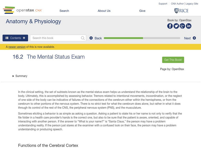 Open Stax: Anatomy & Physiology: The Mental Status Exam