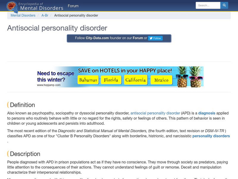 Encyclopedia of Mental Disorders: Antisocial Personality Disorder