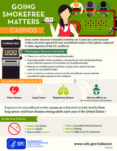 Everyone has the right to a smokefree workplace, but those who work in casinos are exposed to so much secondhand smoke that they can suffer the same ailments as heavy smokers themselves. Learn more about the effects of secondhand smoke,...