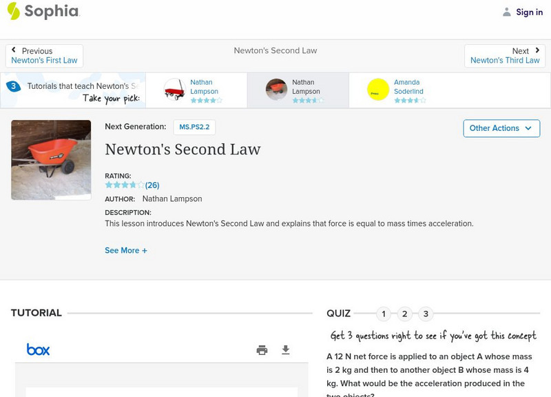 This lesson introduces Newton's Second Law and explains that force is equal to mass times acceleration. It is 3 of 3 in the series titled "Newton's Second Law."