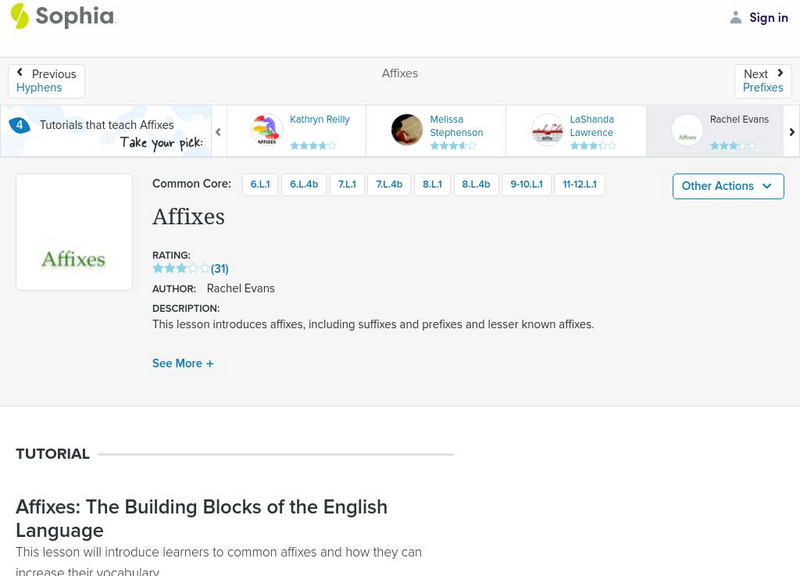This lesson introduces affixes, including suffixes and prefixes and lesser-known affixes. It is 1 of 5 in the series titled "Affixes."