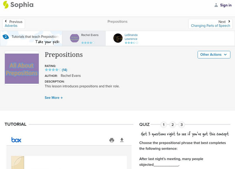 This lesson introduces prepositions and their role. It is 2 of 2 in the series titled "Prepositions."