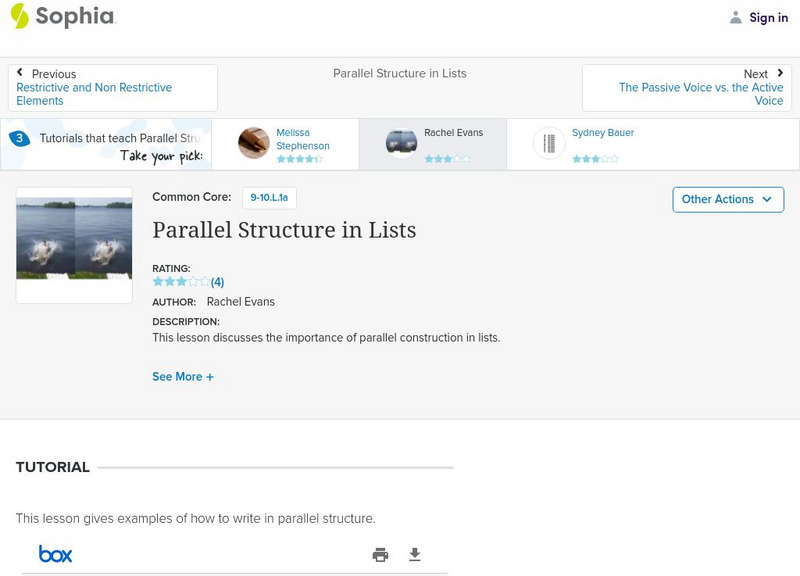 Sophia: Parallel Construction: How to Make a Sentence Parallel: Lesson 5