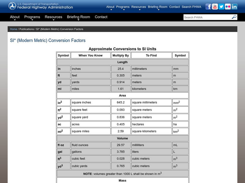 Federal Highway Administration: Si (Modern Metric) Conversion Sheet