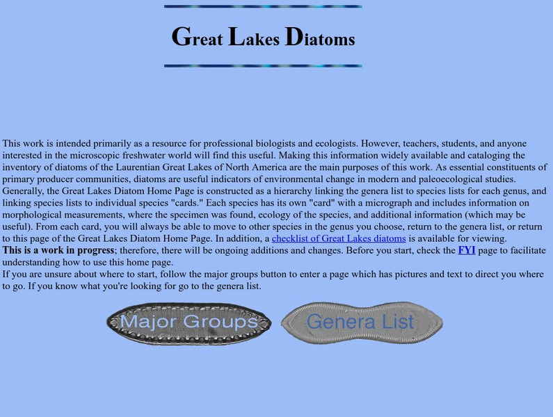 Major groups of diatoms listed. Also genera list. A comprehensive site on diatoms.