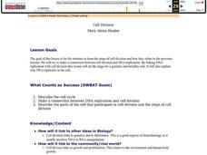 Students describe the cell cycle. They make a connection between DNA replication and cell division. Students describe the parts of the cell that participate in cell division and the steps of cell division.