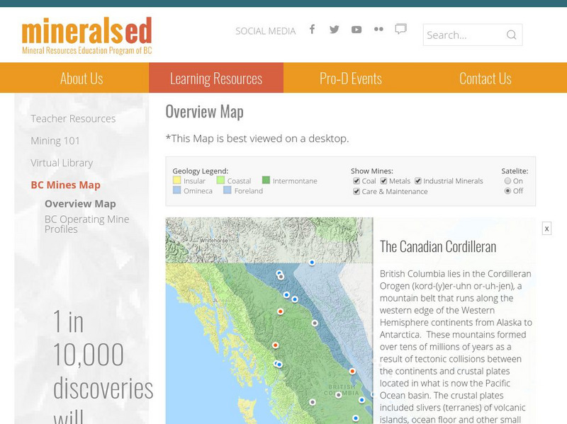 A map of British Columbia that shows the locations of all the coal and metal mining operation in British Columbia in 2008. Each coal and mining operation is linked to a secondary web page that provides detailed information on the various...