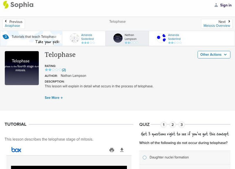Sophia: Telophase: Lesson 3