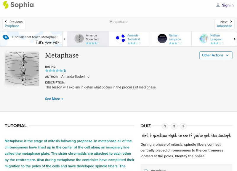 This lesson will explain in detail what occurs in the process of metaphase. It is 4 of 4 in the series titled "Metaphase."