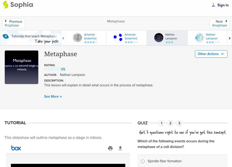 This lesson will explain in detail what occurs in the process of metaphase. It is 3 of 4 in the series titled "Metaphase."