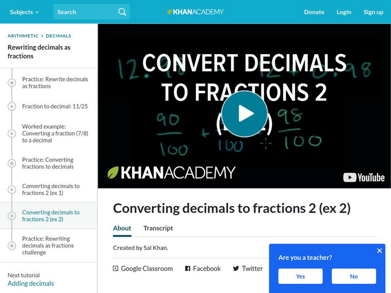 Khan Academy: Converting Decimals to Fractions 2