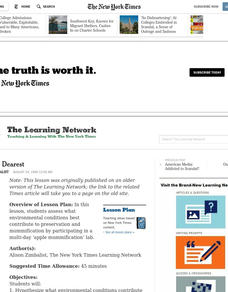 Can you go ice fishing in the ocean? Learners examine the freezing point of different saltwater solutions. Each solution has a different concentration of salt. By comparing the freezing points graphically, they make conclusions...