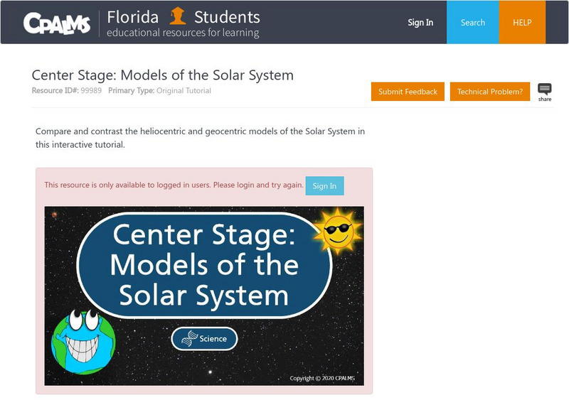 Florida State University Cpalms: Florida Students: Center Stage: Models of the Solar System