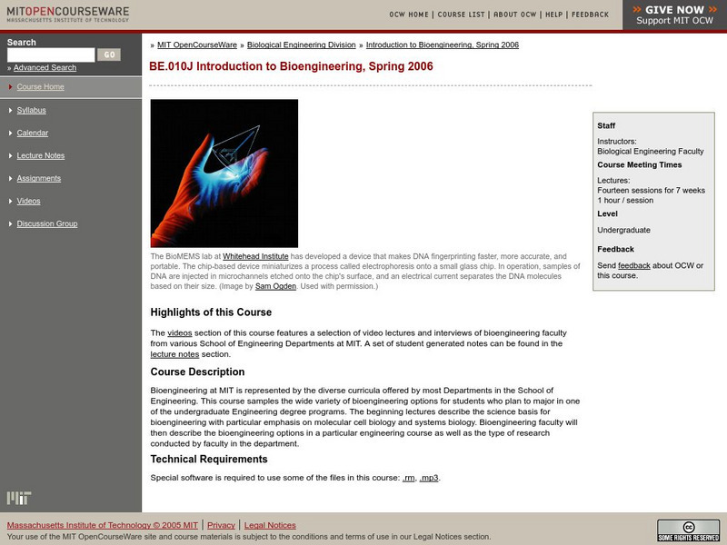 College-level biotechnology course highlighting a science basis for bioengineering focusing on molecular cell biology and systems biology. Course contents include video lectures and interviews of bioengineering faculty, lecture notes,...