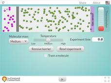 Does molecular mass affect the rate of diffusion? The simulation allows scholars to experiment with diffusion while varying the molecular mass and temperature. The timer automatically stops when a certain point is reached, making it easy...