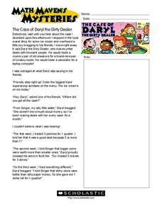 In this story problems worksheet, students read the story problem of 'The Case of Daryl the Dirty Dealer.' Students then determine how much money Daryl should return to his little sister.