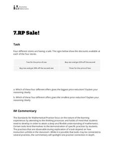 Everyone loves a sale, and this worksheet allows learners to calculate which sale is more rewarding. The activity can be adapted for different thinking contexts. The answer key describes different answer choices, some being higher...