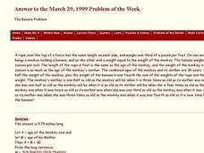 In this algebra worksheet, students rewrite a word problem using algebra symbols. They calculate the length of a banana used to estimate the age of a monkey. There is answer key.