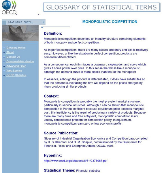 Oecd: Glossary of Statistical Terms: Monopolistic Competition