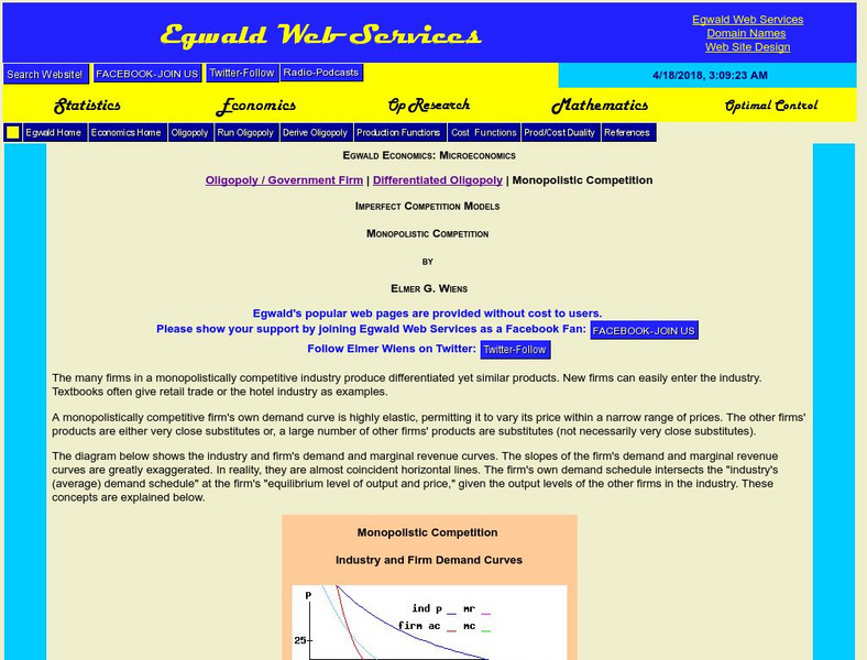 Egwald Web Services: Imperfect Competition Models: Monopolistic Competition