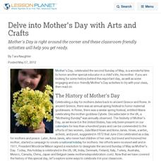 Students complete a craft project. In this Mother's Day lesson plan, students learn about Mother's Day around the world, write an essay about their mother, create a Mother's Day card, create coupons for meaningful time with their...