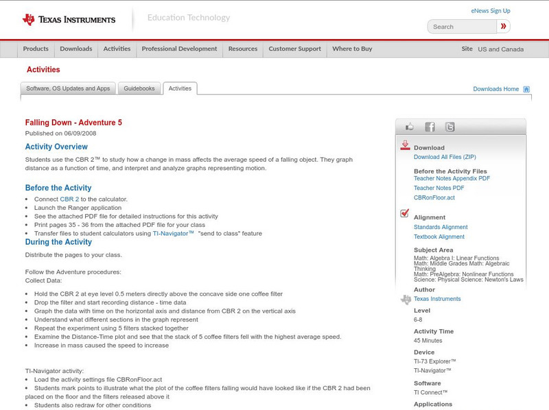 Students use the CBR 2 to study how a change in mass affects the average speed of a falling object. They graph distance as a function of time, and interpret and analyze graphs representing motion.