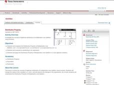Learners solve problems using distribution. In this algebra lesson, students factor equations using the distributive property. They graph their solution on a graph.