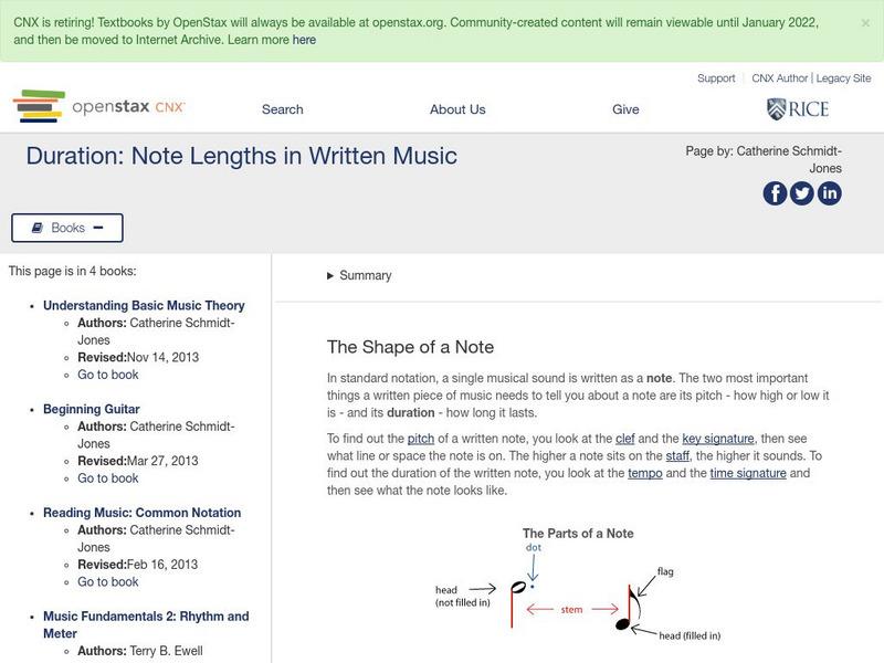 Open Stax: Catherine Schmidt Jones: Duration: Notes Lengths in Written Music