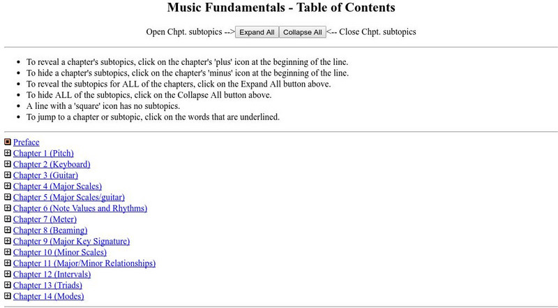 This site provides music theory information on such topics as rhythm, intervals, scales, chords, etc. Also, there is a fine section which describes the basic concepts of form and structure.