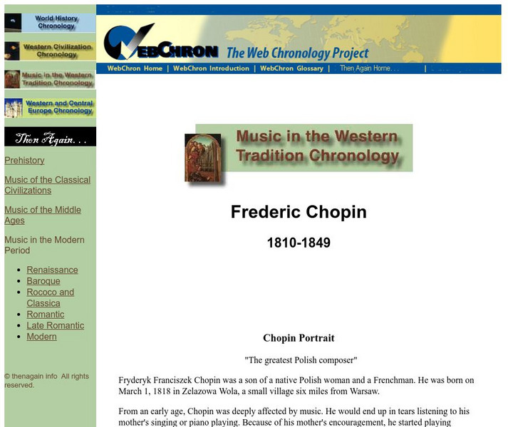 This site from the North Park University provides a brief biographical sketch of pianist Frederick Chopin describes briefly the Polish nationalist themes in his compositions.