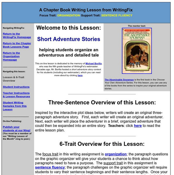 Inspired by the interactive plot ideas here, writers will create an original three-paragraph adventure story. First, each writer will create an original adventurer. Next, each writer will place the adventurer in a brief, organized...