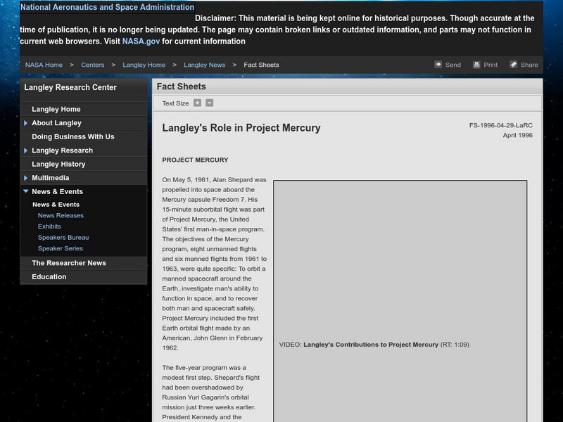 The article on this website provides a detailed description of the contributions that Langley provided to the Mercury Space Missions.