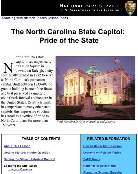 A teaching unit designed for grades 5-12. Students will examine North Carolina's early history and learn how Raleigh became the state's permanent capital. They will also probe into the building history of North Carolina's State House and...