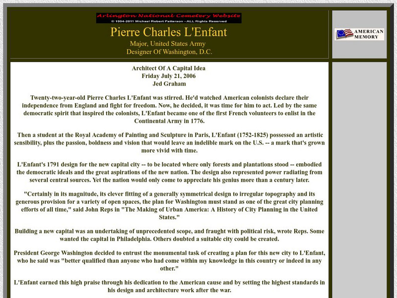 Arlington National Cemetery Website: Pierre Charles L'enfant