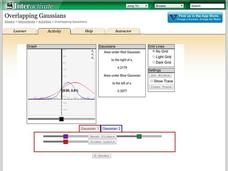 Adjust the overlap to compare probabilities. Using sliders, learners adjust the shape of two Gaussian curves. The interactive calculates the area of the left tail for one curve and the right tail for the other. Pupils set the interactive...