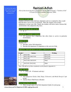 Students explore body parts of fish and observe the adaptations they have to live in their environment. In this fish adaptations lesson plan, students create their own fish and look at native Arizona fish and what adaptations they...
