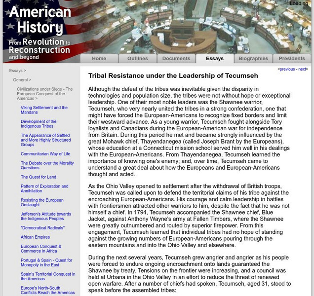 American History: Essays: Tribal Resistance Under the Leadership of Tecumseh