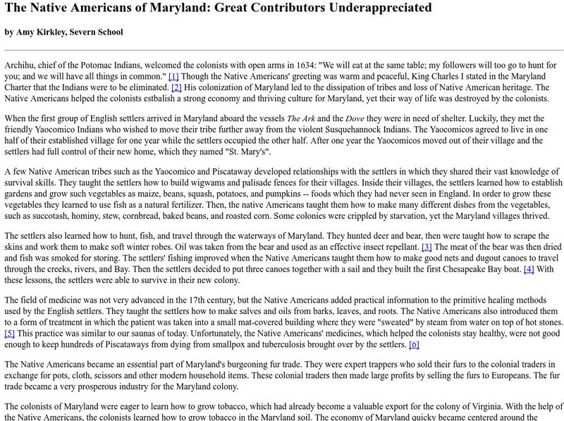 This student essay discusses the Native Americans of Maryland that helped the colonists settle the land and survive, but were, in turn, run off of the land.