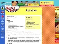 Let's go on an archaeological dig! Here is a lesson that allows your young scientists to do just that! You fill up an empty water table or tray with sand, and bury miscellaneous objects. Pupils use spoons, sifters, and brushes to find...