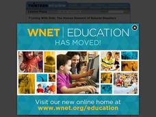 Students explore human elements that are a part of natural disasters, read a Hawaiian myth, conduct a survey, discuss why people choose to live in high risk areas, and participate in a writing activity based on studenT real life accounts...