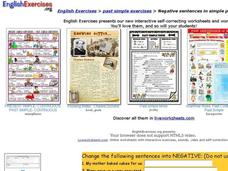 For this negative sentences worksheet, learners change the sentences given into negative sentences in the simple past. Students complete 10 problems.