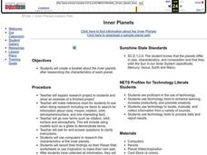 Students research characteristics of the planets and record their findings on Planet Web worksheet. They create fold paper to create a foldable booklet to display the information they discover about the planets.