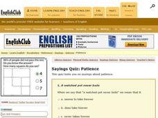 In this sayings about patience instructional activity, students complete sentences by interpreting English sayings about patience.