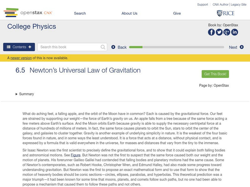 [Free Registration/Login Required] Learn about the universal law of gravity and the role Newton played in relating terrestrial and celestial mechanics to one another.